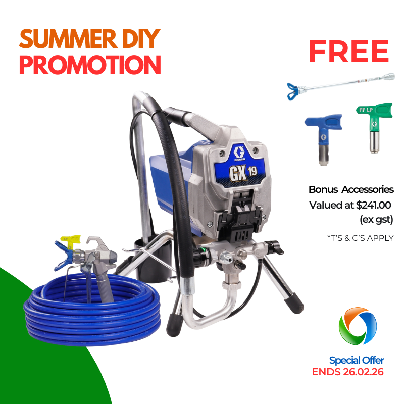 The Graco GX19 is the smart way to step into professional airless spraying. Built for painters, builders and serious DIYers who want a clean, consistent finish; without the bulk!